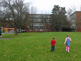 Here's a picture of our kiddos running on the Humpy Lumpy Lawn by the dorm where my hubby and I met. We both lived in McClain. He lived on the first floor and I lived on the second. It felt great going back and knowing that other students where falling in love, making life long friends, and really enjoying learning. I do hope our kiddos are as fortunate as we were!